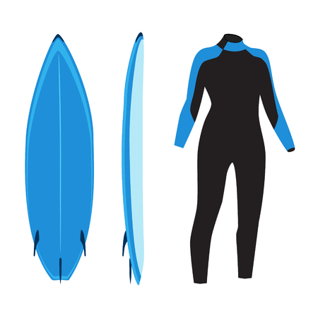 近代的なカラフルなサーフボード サーフィン ウェット スーツ白い背景の上のラスターのイラスト 青いサーフボード 海の極端なスポーツ サーフィン用具 の写真素材 画像素材 Image